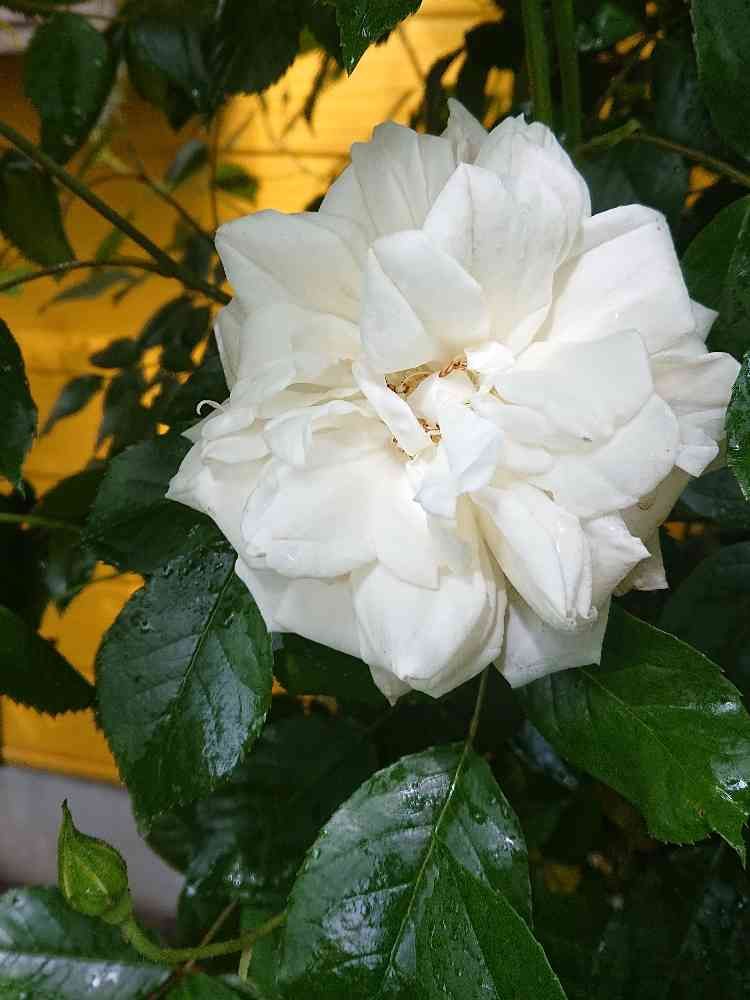 葉影でツルアイスバーグ🌹が一輪開花していたの発見❗ 一番花は大きいわ~🎵
