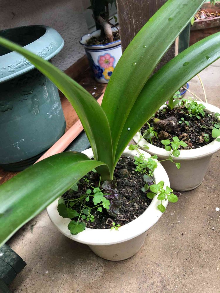 隣の鉢は小さい球根なのですが💦虫きてるかも!中々育ちません。