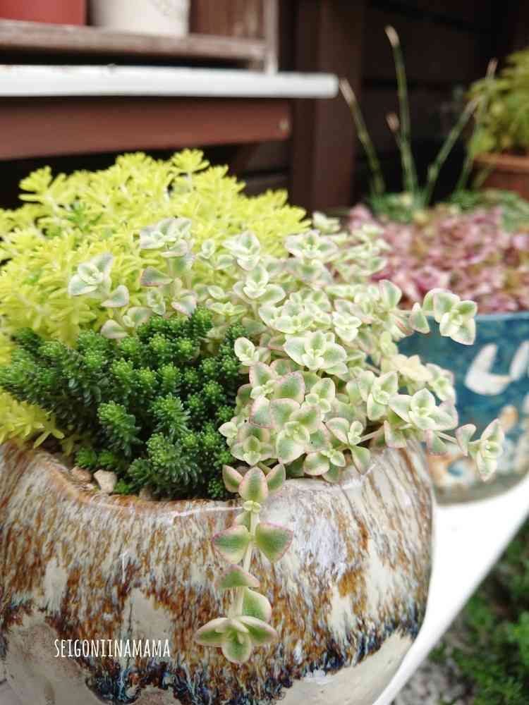 セイゴニイナママさんの小さな庭,自作鉢,セダム寄植えの投稿画像