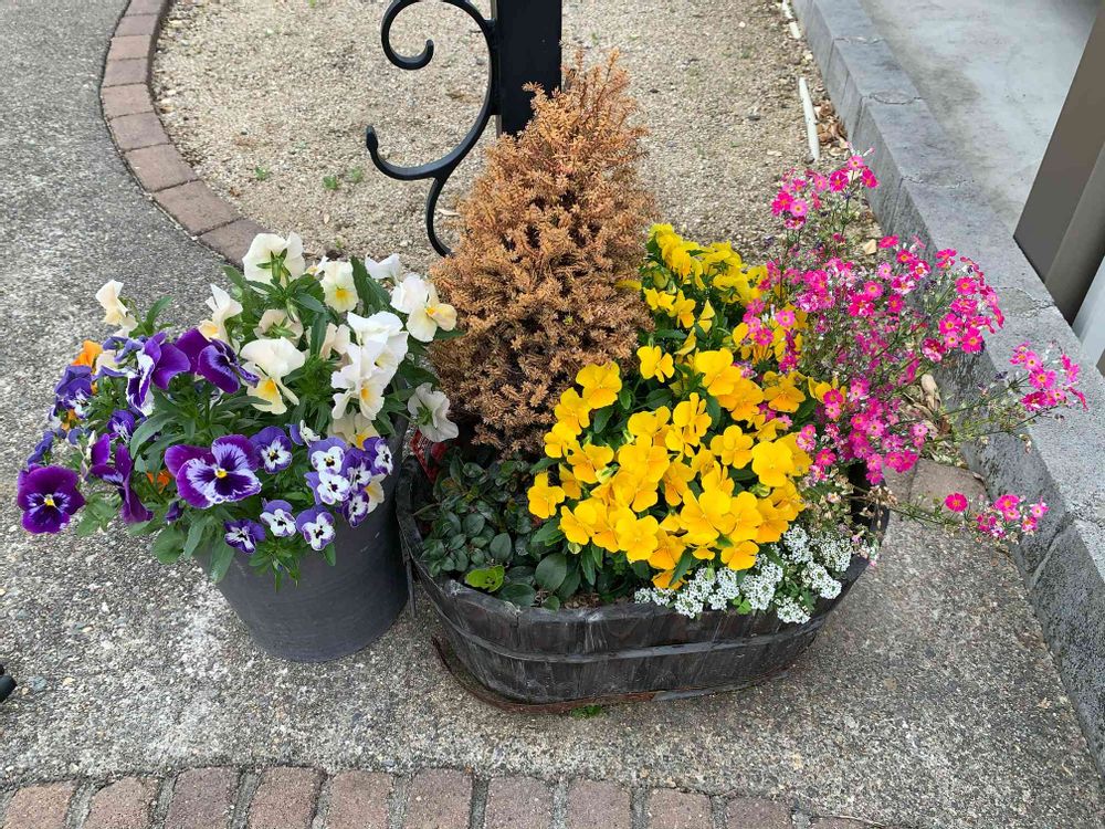 ポスト下の寄せ植えたち🎶