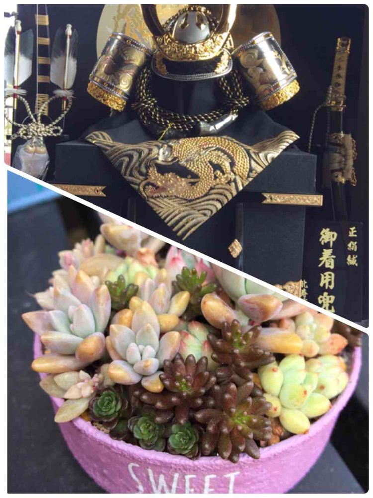 立派な兜飾りと、可愛い多肉ちゃん~❤⤴⤴