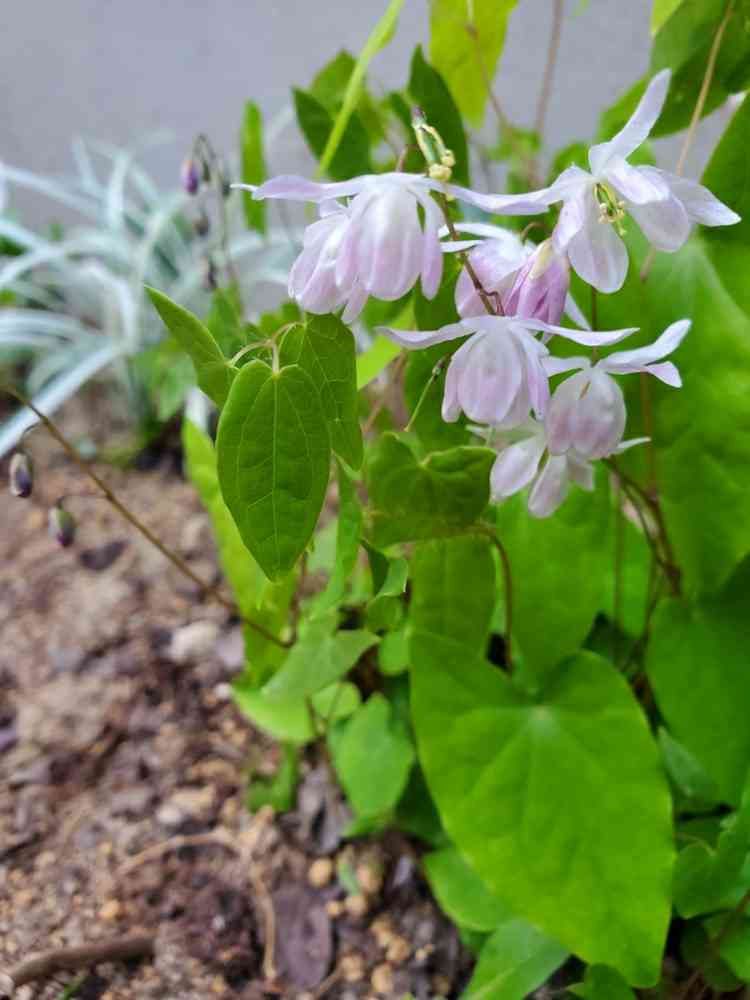 はい、イカリソウ、日陰にひっそりと咲いています。