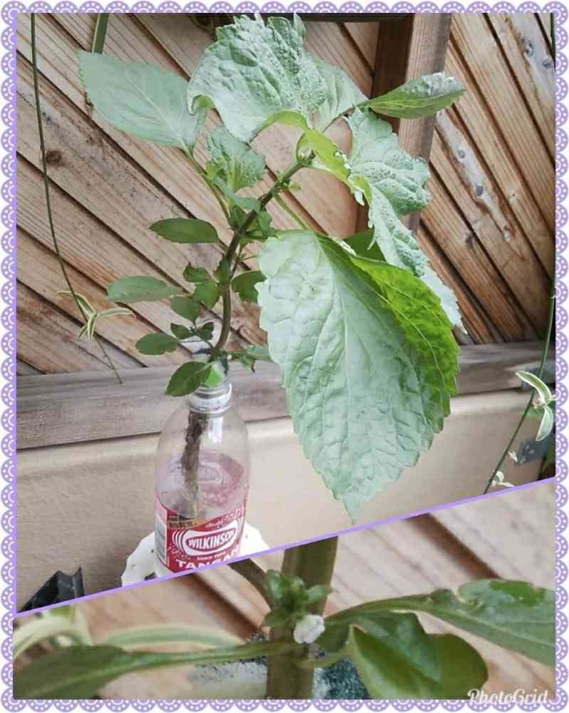 青紫蘇の水耕栽培。めっちゃ発育よい。すでに花が咲いてて、びっくりした。摘まんで食べたらおいしかったです(笑)ついでに先端も摘んで食べました。