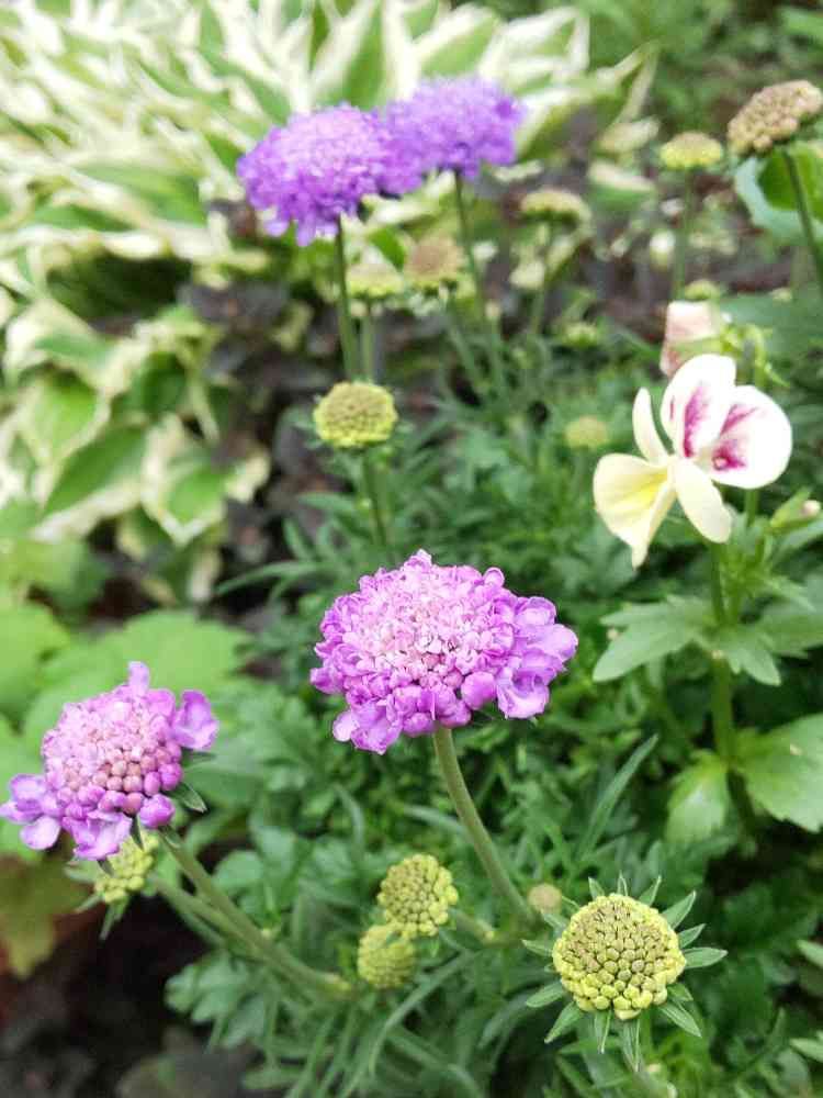 寄せ植えの中のスカビオサ、やっとスイッチが入ったみたい💙