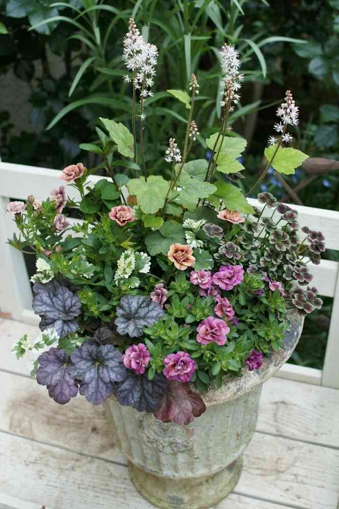 こんにちは~カリブラコア アンティークシリーズもこんなに寄せ植えにすると素敵ですね✨No.42を単品で植えています。