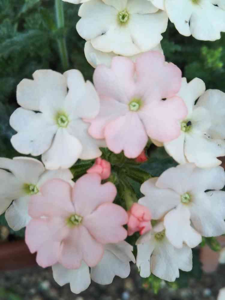 バーベナ🌼 薄いオレンジ色が 白になっていきます 冬越ししました ピンクは😇