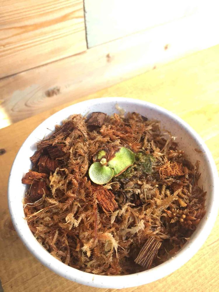 しかしまだ2センチぐらいだけどいけるかな?とりあえずココヤシチップと水苔に埋めてメネデールかけときました😑