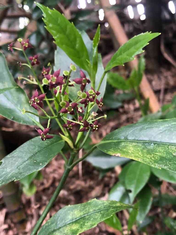 雌花よりは目立つけど、やっぱり地味なアオキの雄花。