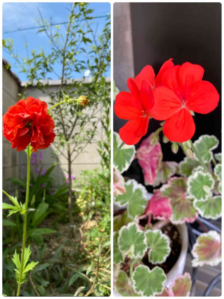 ゼラニウムは斑入りの葉っぱ🌱もかわいいです。