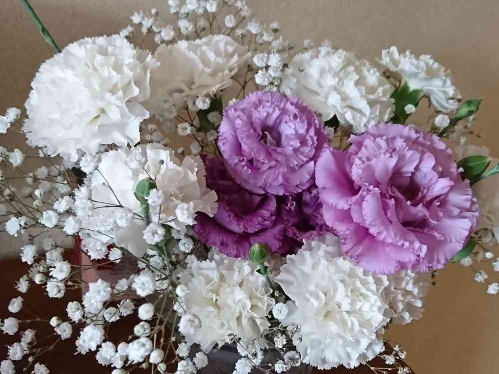雨の日は部屋のなかでお花🙋💕しましょう😆もう咲きずぎて今がみどころかな😇🌼母の日に義母に白のカーネーション❤️