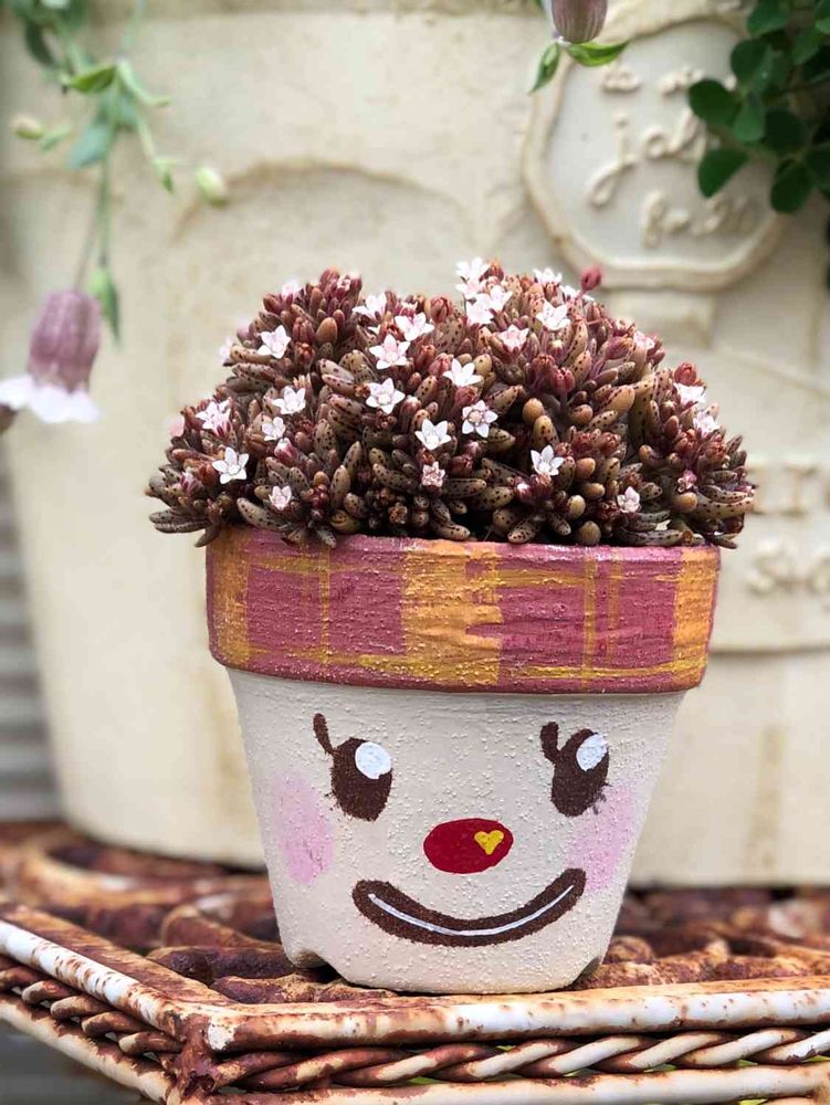 去年フラリエでお迎えしたお顔鉢(⁎⁍̴̛ᴗ⁍̴̛⁎)💓