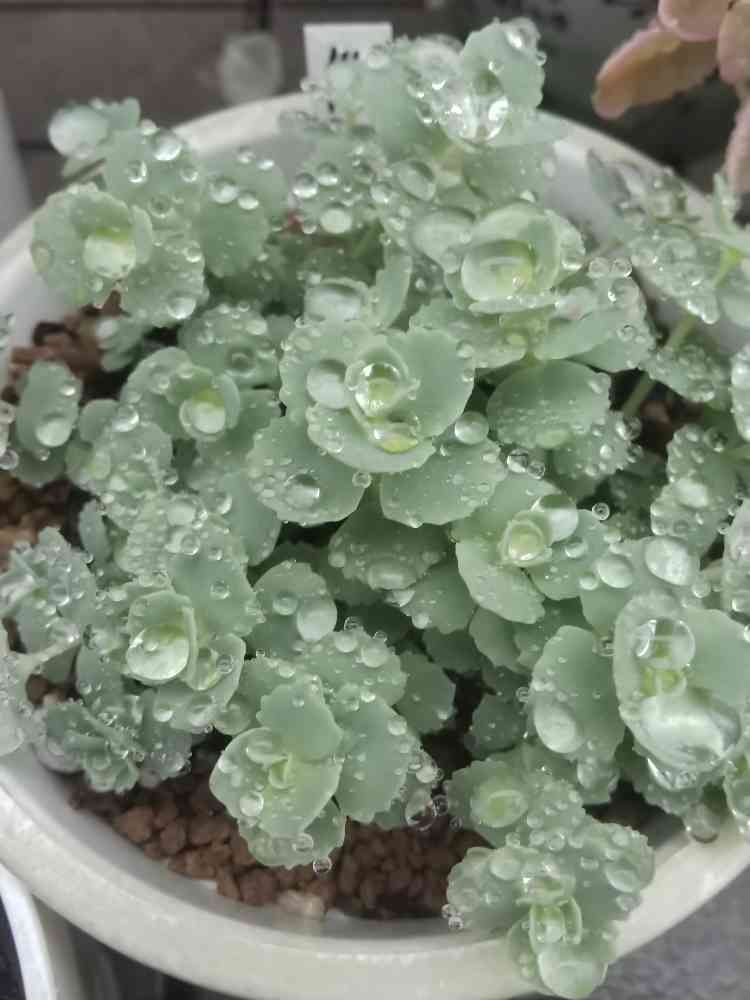 ミセバヤの雨粒がとても綺麗だったので、カメラのふんわり機能というのを使って撮ってみた☺️