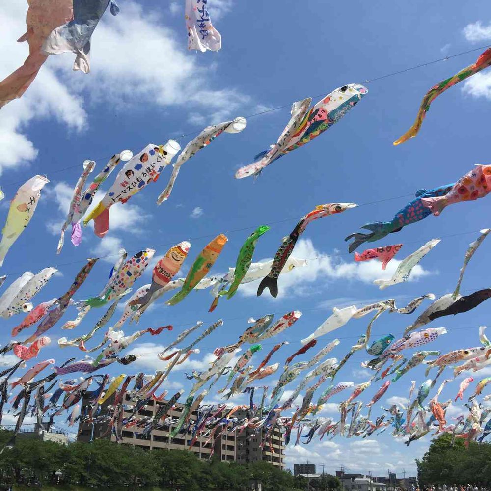 わあっ、いっぱいの鯉のぼり🎏が泳いでる!