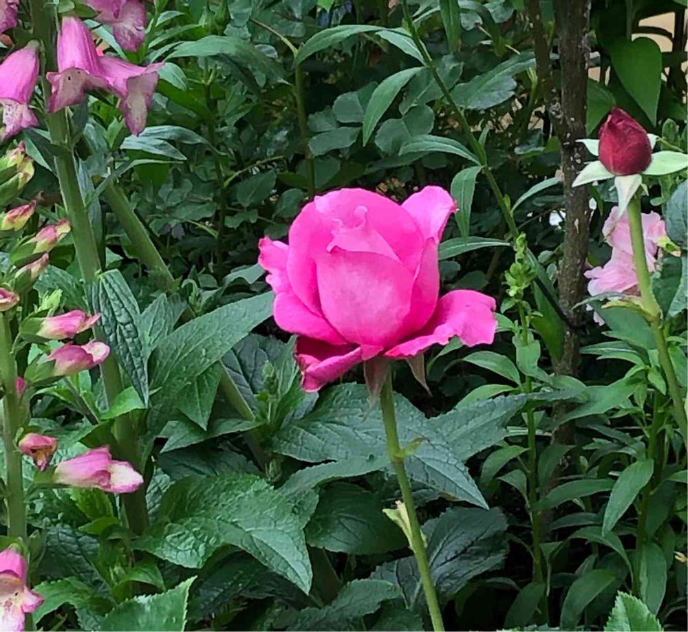 横にいるのは、ジギタリスです❣️日向に植えたらとても大きくなり、🌹さんまで侵入しそうです💦
