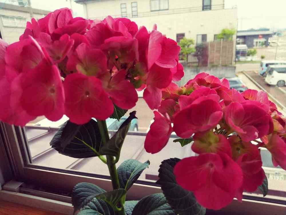 昨日の朝、娘からのプレゼント🎶💓赤いあじさいの花🌼