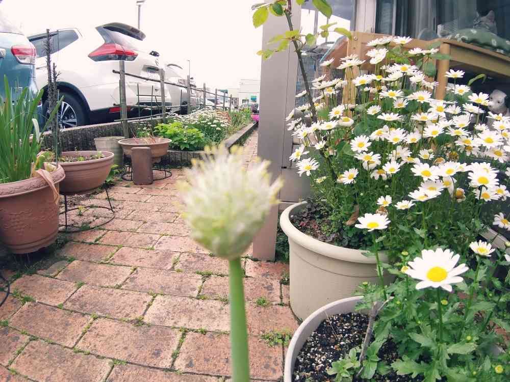 👑主役はネギ坊主、今朝いきなりポンポンができてた☺️☁️☁️空の下