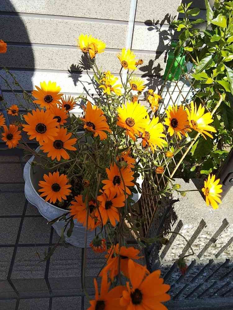 ずっとオステオスパルマムだと思ってた花、ディモルフォセカだという事が分かりました。非常によく似ているので、間違えやすいようですね。お花の種類も多くて、名前も一度聞いただけでは覚えられませんね😅