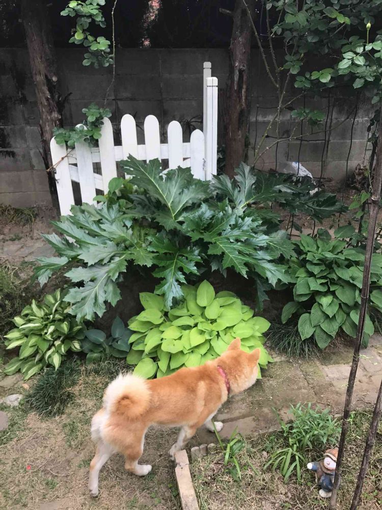 ギボウシの、目が顔を出してから開くまでの速さは異常。しかしアカンサスの勢力拡張もそれを上回るくらい早い。