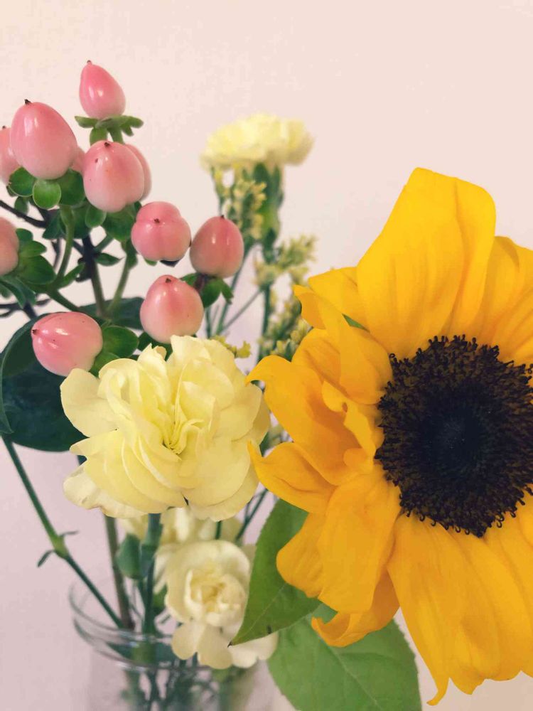 娘の好きなヒマワリ🌻入りの、元気をくれる花束でした😆