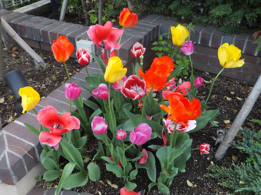 picを整理していたところ、少し前のお散歩途中でpicした綺麗なチューリップの寄せ植えpicが見つかりました。