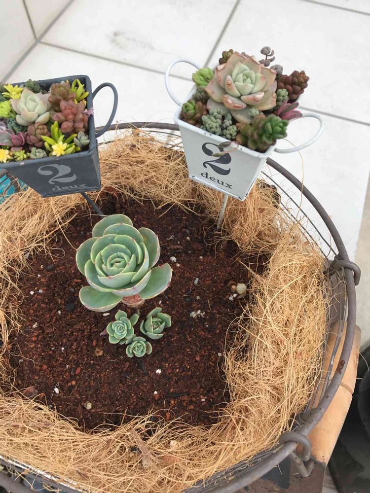 春にかけて葉っぱが へにょへにょペラペラになってかなり小さく...。通気性かなぁとカゴ植えにしてみたら葉数も増えてお子様も大きくなってきたー☺︎。がんばってー。