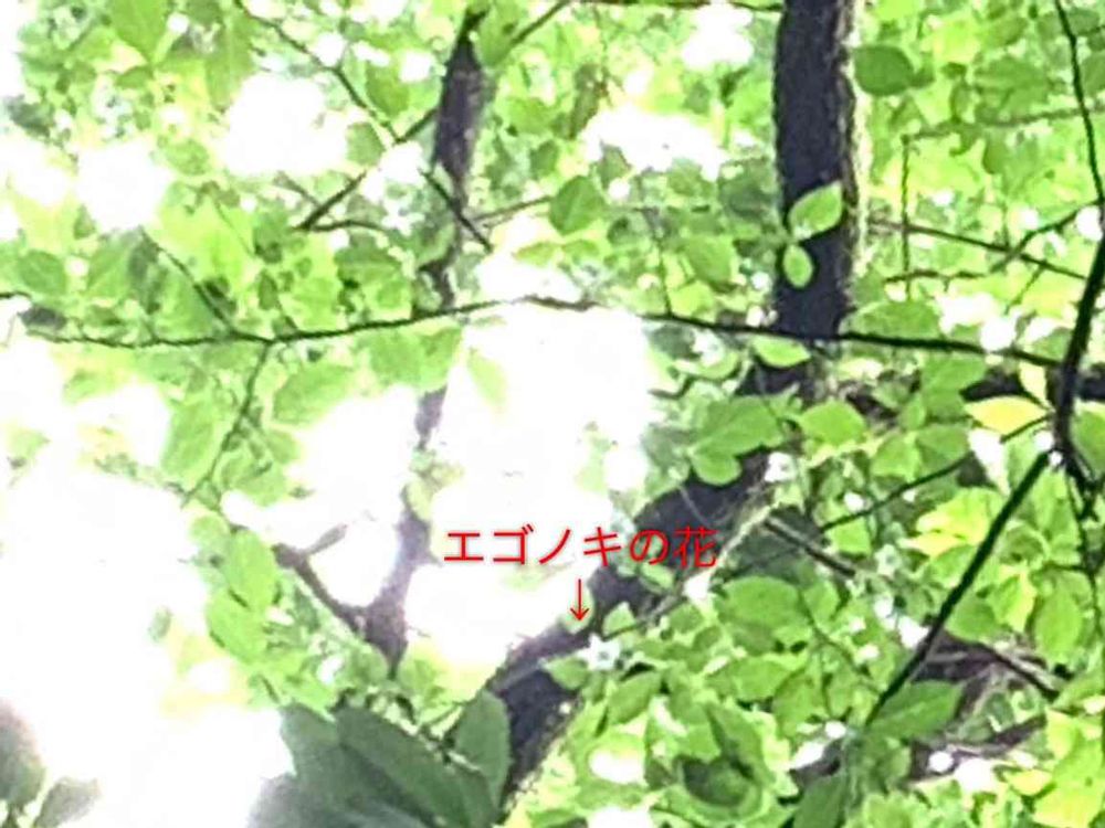 お昼の買い出しがてら、少し遠回りをして昨日スマホで撮影できなかった10m頭上のエゴノキの花を探す。