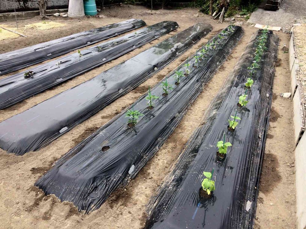 マルチは草が生えなくて、本当に助かります🍉🍆🍠🍅