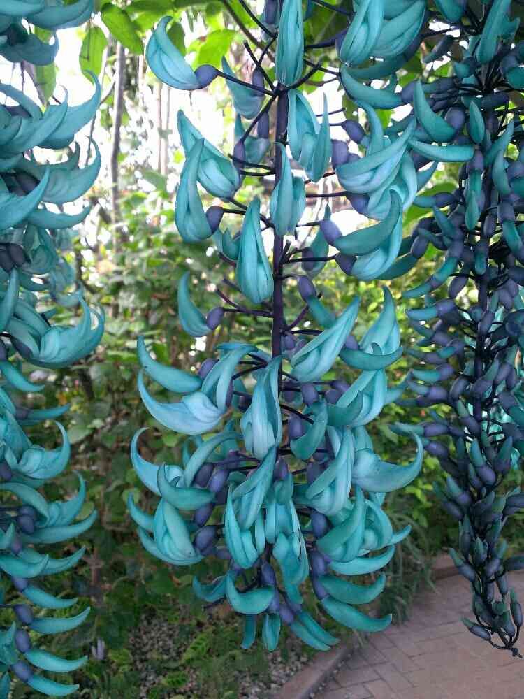 公園の小さな温室で、宝石のような色のヒスイカズラが満開でした。