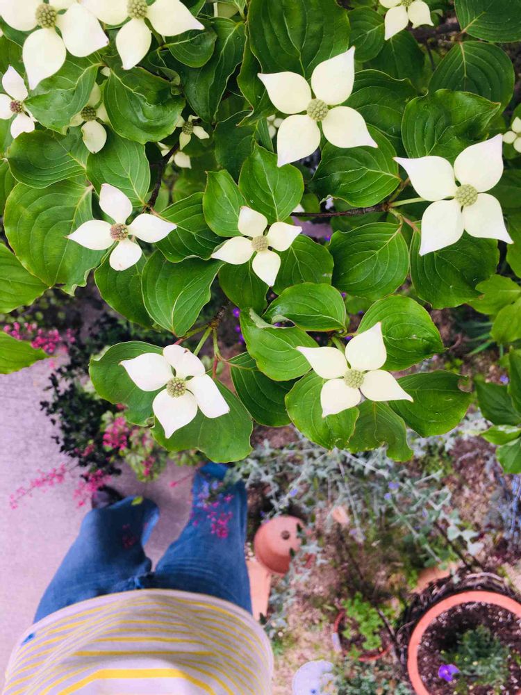 我が家の咲かないやまぼうしが、、、まあまあ咲いてる!!どうしちゃったの?嬉しいけど😃