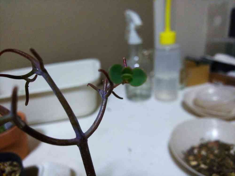 カランコエ、リンリン。花は終わりましたが、少し葉が出てきて。可愛いので、しばらく水差ししてみます。