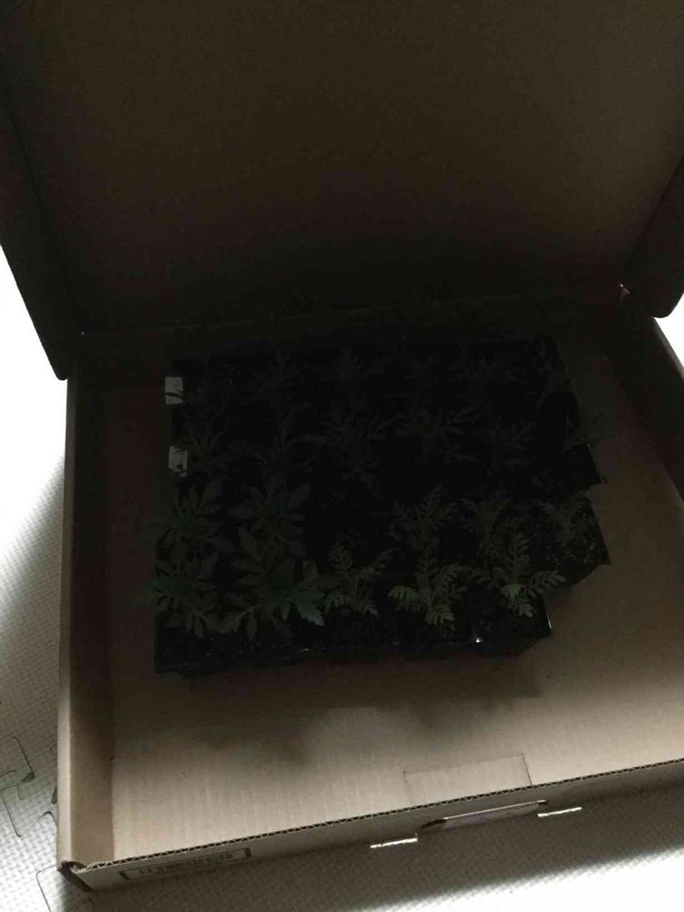 一応葉っぱの目が覚めないように(笑)パソコンの空箱で影を作りながら作業。役に立つわDynabookの箱!