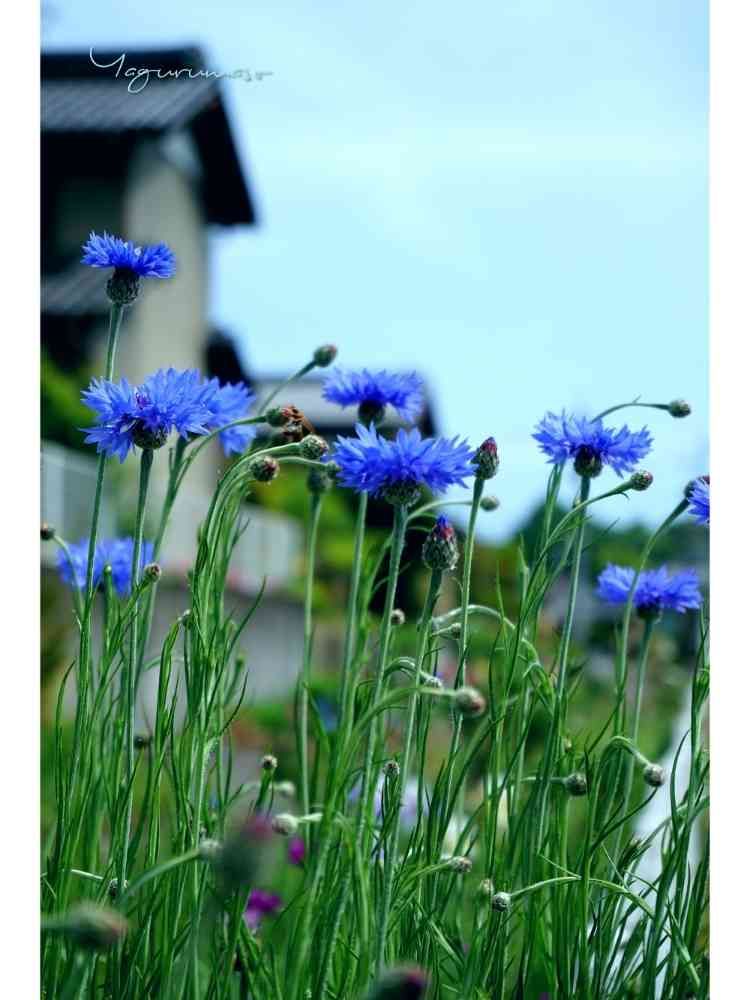 青空に、深い青空の矢車草がよく似合う…この時期、何処でも見られるが、やはり青色の矢車草が一番…。🌼🔵🌿👍