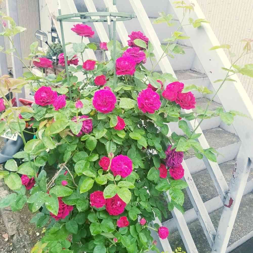 赤い薔薇は写真だと色味が全然伝わらない(´・д・`)スヴニールさんは、誘引しくじってぎゅーぎゅーなかんじ。めっちゃうどん粉ってます。ミミエデンよりうどん粉激しいってどーなの…