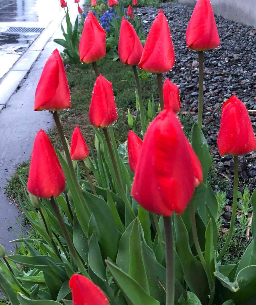 赤いチュウリップ🌷花弁閉じた姿もいいなぁ〜😍