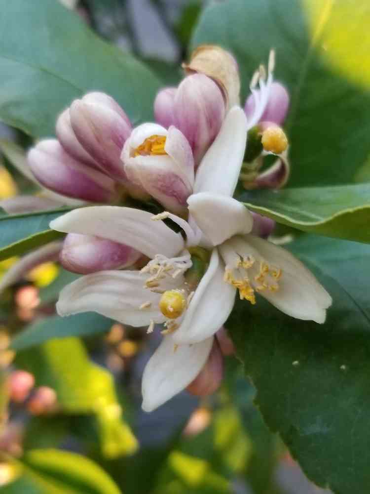 レモンのお花って、咲くと綺麗な白色だけど、ツボミの時は紫木蓮みたいな色をしてるんだね~