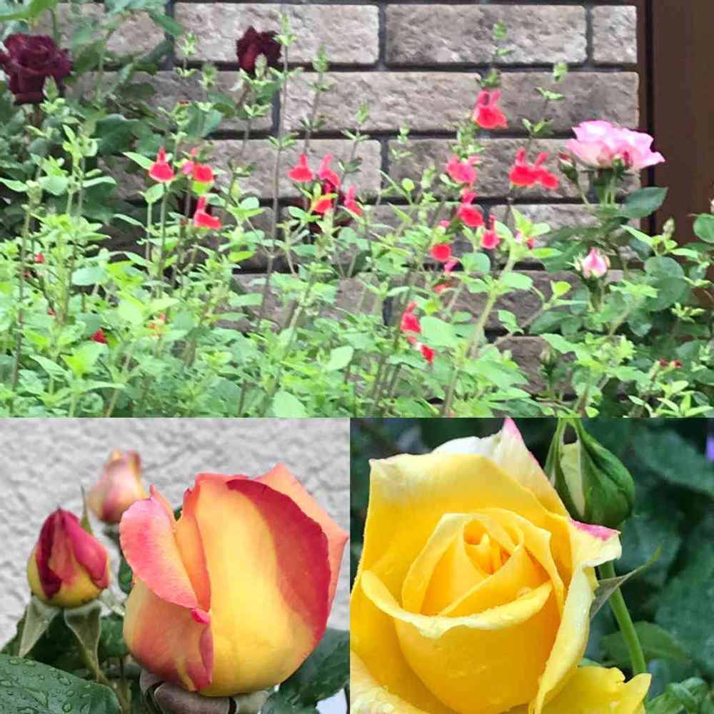 玄関,チェリーセージ ホットリップス,薔薇 ピースの投稿画像