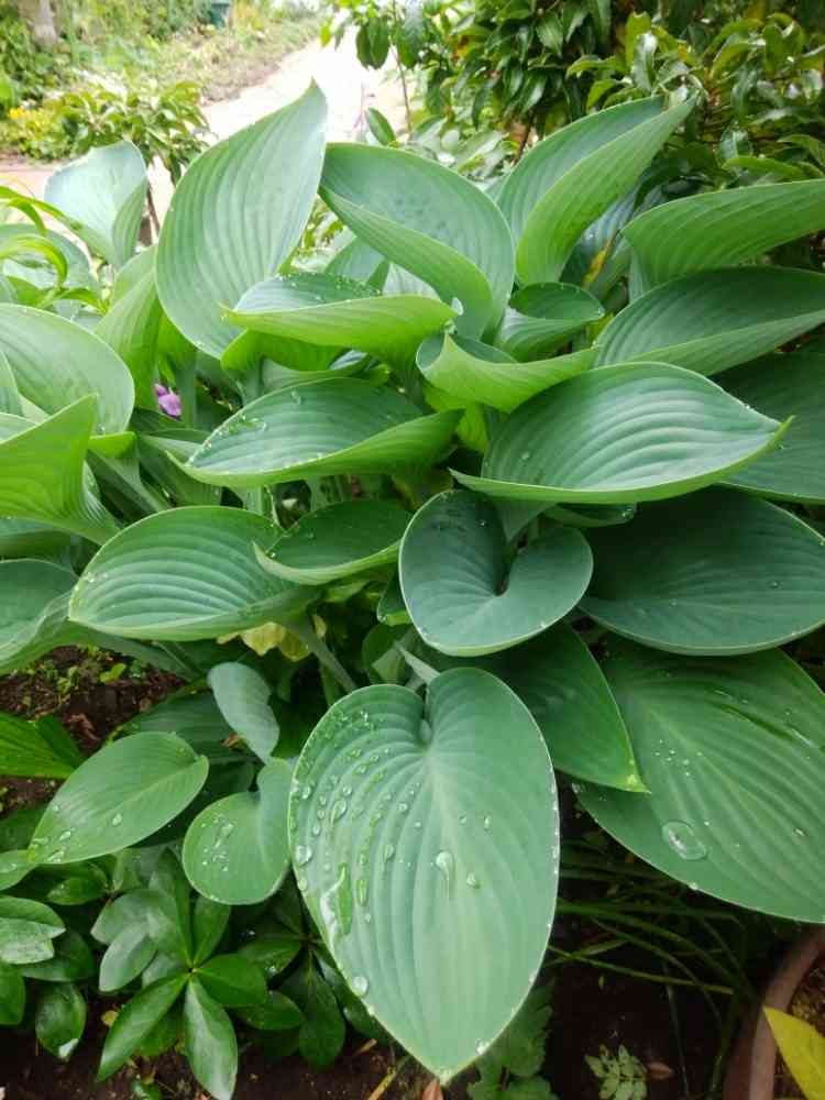 雨上がり❕庭の片隅で大葉ギボウシあまつゆを帯びて🌿🌿🌿