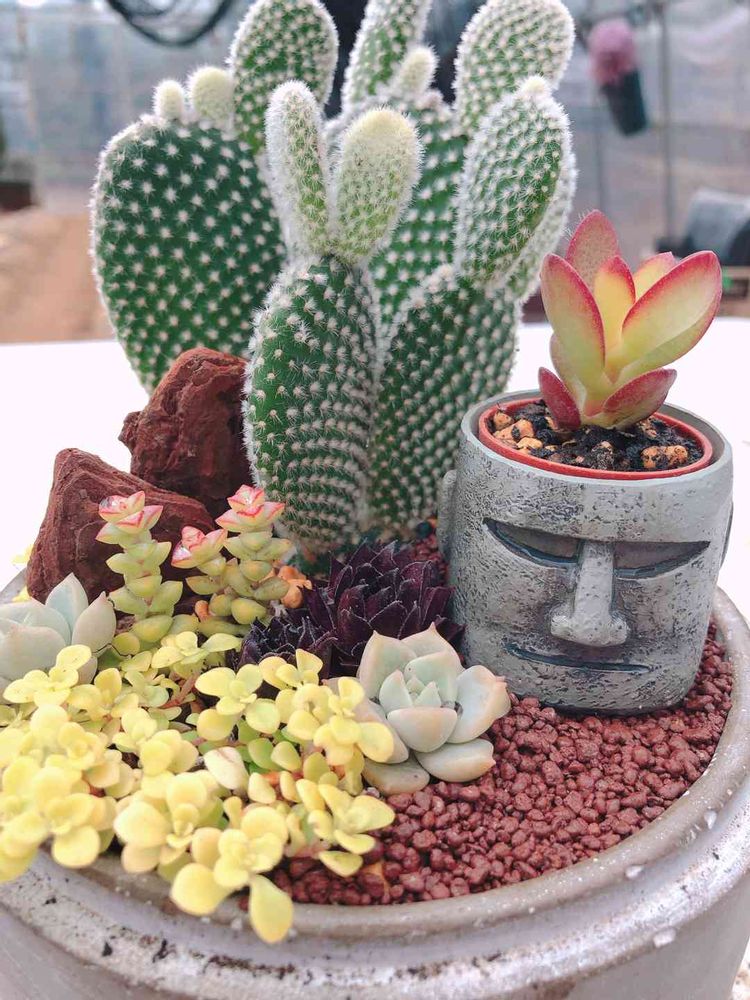 サボテンとモアイの寄せ植え😙🌵