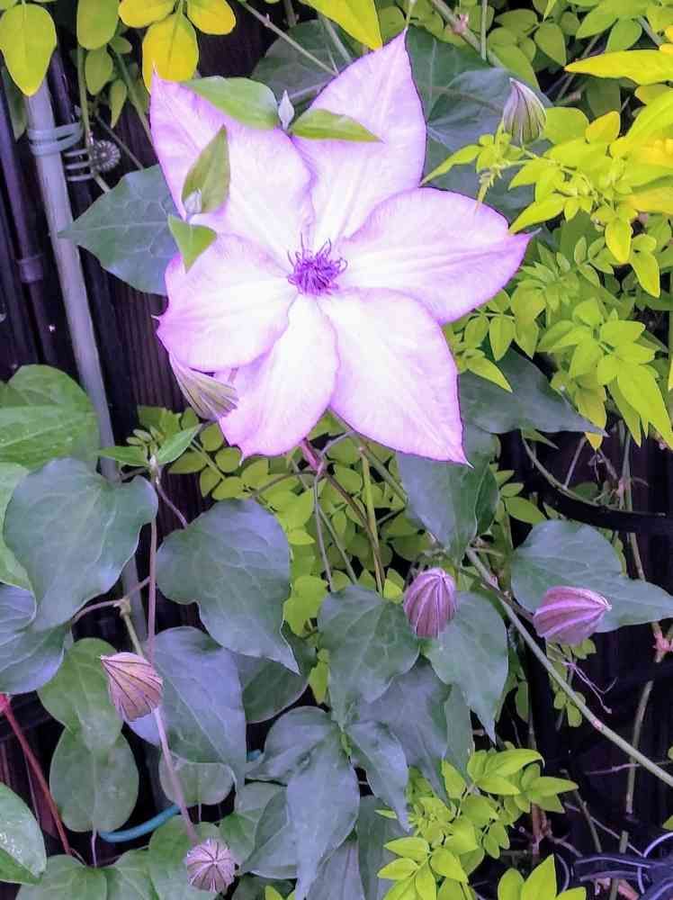葉っぱがグレーに見えたよ〜とってもマッチして素敵😄 名付けもナイスだね😊 私、饅頭クレマチス見続けたから楚々としたクレマチスに目移りしちゃうわ😍😘