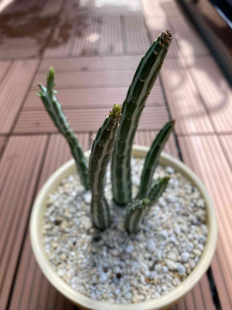 我が家の棒多肉ちゃん、最近先っぽから何やら葉っぱらしき物が出てきました🌱