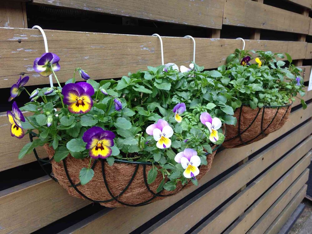 さん パンジーやビオラって1苗でこんもり大きくなるよね😂 ハンキングだから下にも広がれるよ💦