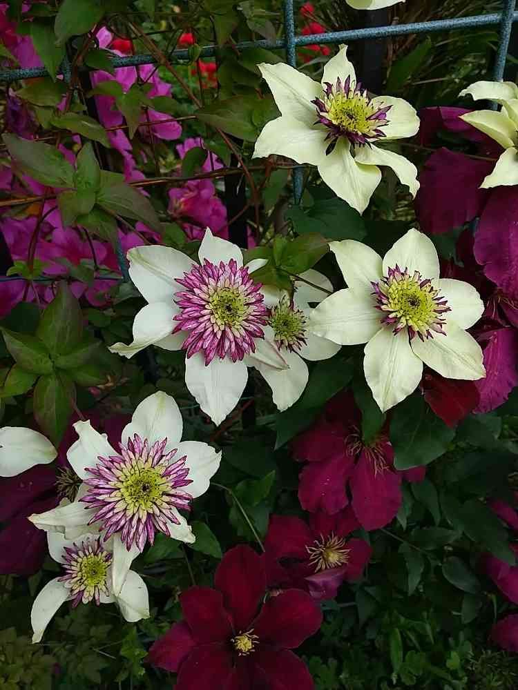 うちのテッセンも咲き始めました。赤っぽいのはニオベかな?😊🎵