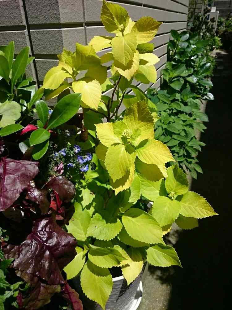 ぷりんちゃんさんの玄関,黄金葉アジサイ,大きな植木鉢の投稿画像