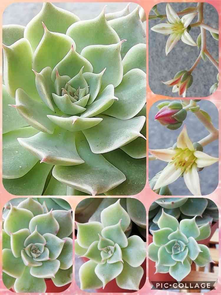 白牡丹さんとの交配種ね💗ロゼット状で、葉の色のニュアンスがとっても綺麗な子なんですよね~💗可愛らしい白いお花~大好きな子です˗ˏˋ ♡ ˎˊ˗゚.*・。゚♬*⋆*❤︎゜