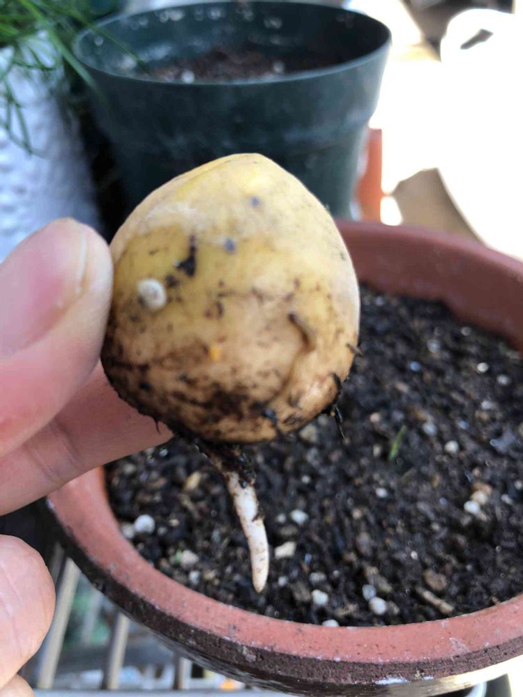 アボカド🥑3/3に水栽培と思って始めましたが、、もう一つのアボカド🥑を鉢植えにしたときこの子も土の上に!🌱🎵