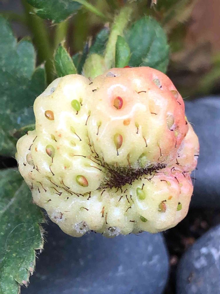 あんなに花付いて実になりかけても、、この子が第一号🍓