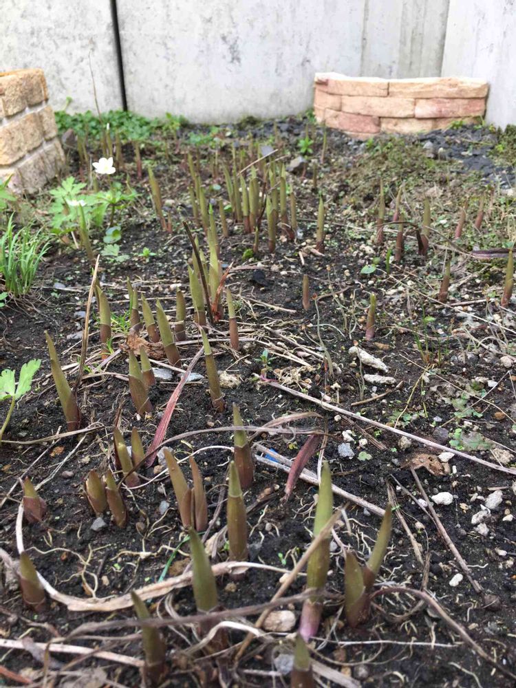 スズランが大好きです。庭の角にスズランの群生を作っています☆やっと芽が出始めました。