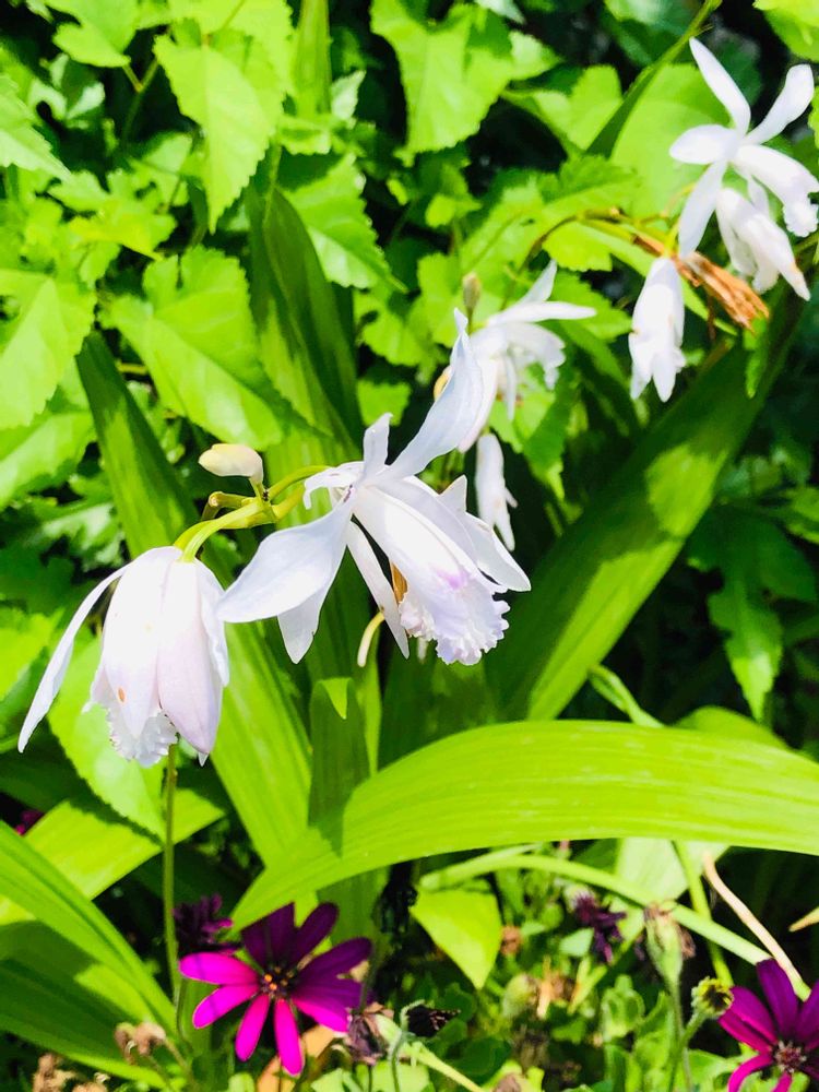 白の紫蘭、我が家にもあります。