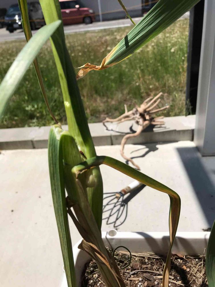 ニンニクが茎の真ん中から破裂して?花を咲かせようとしている?!