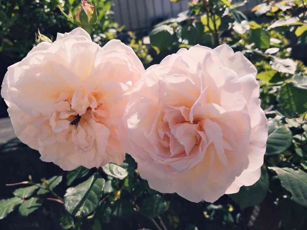 庭のバラが咲きました。 ミツバチも待ってました。☺